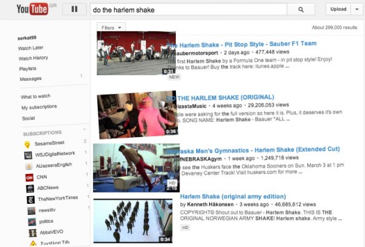 Η επιτυχία των ιδιαίτερα "τρελών" videos που πολλοί χρήστες του διαδικτύου λατρεύουν, θα έχουν και την ευκαιρία να παρακολουθήσουν τη σελίδα να "χορεύει".Με μια επίσκεψη στο YouTube και με αναζήτηση do the harlem shake.Σε λίγα δευτερόλεπτα θα δείτε την σελίδα να χορεύει!